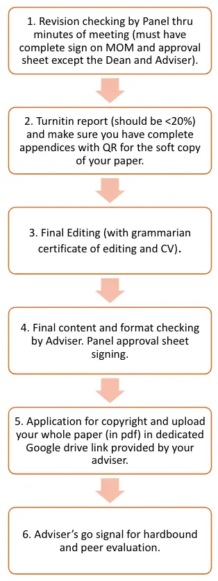 Below is the exact flowchart as next steps dedicated for QCU-COE Industrial Engineering Department after capstone or feasibility final defense.